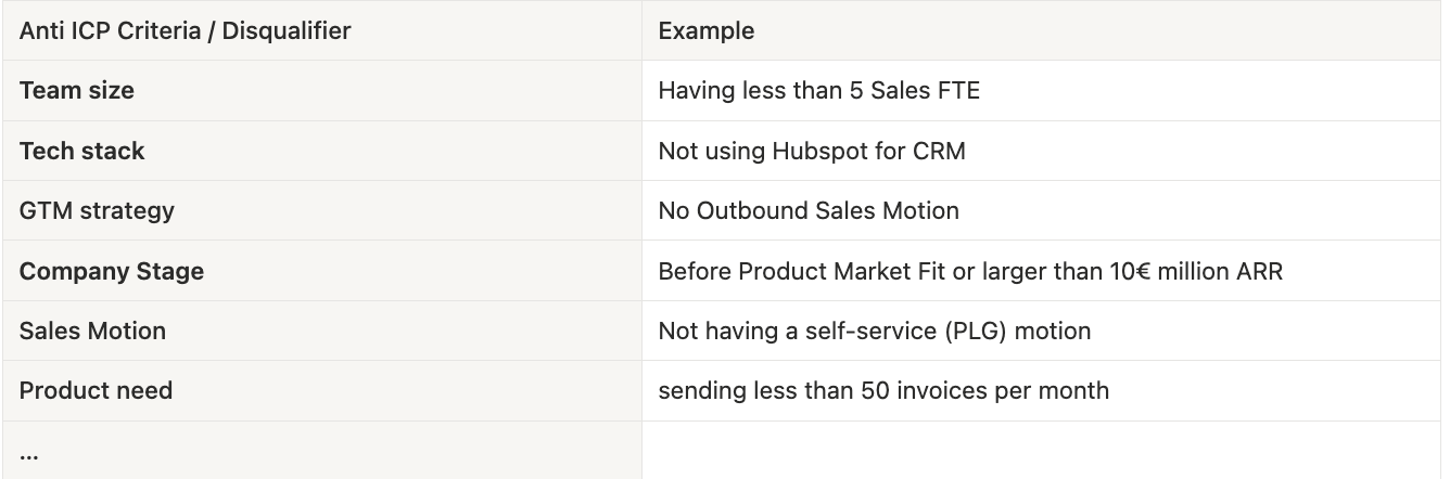 What are the disqualifiers that define your ANTI ICP?