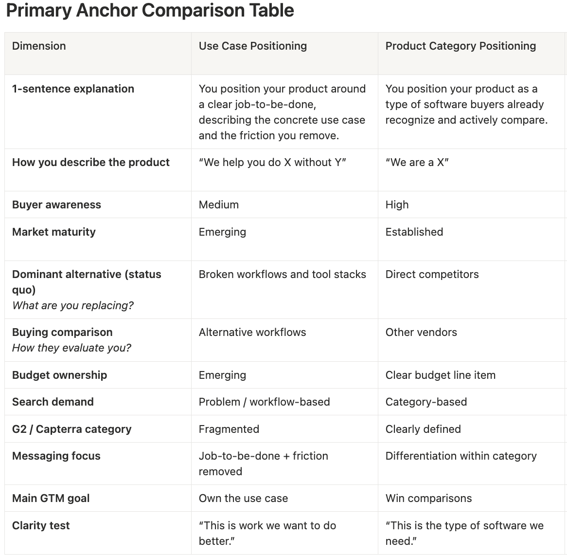 2) Decide on your primary positioning anchor (product category or use case)