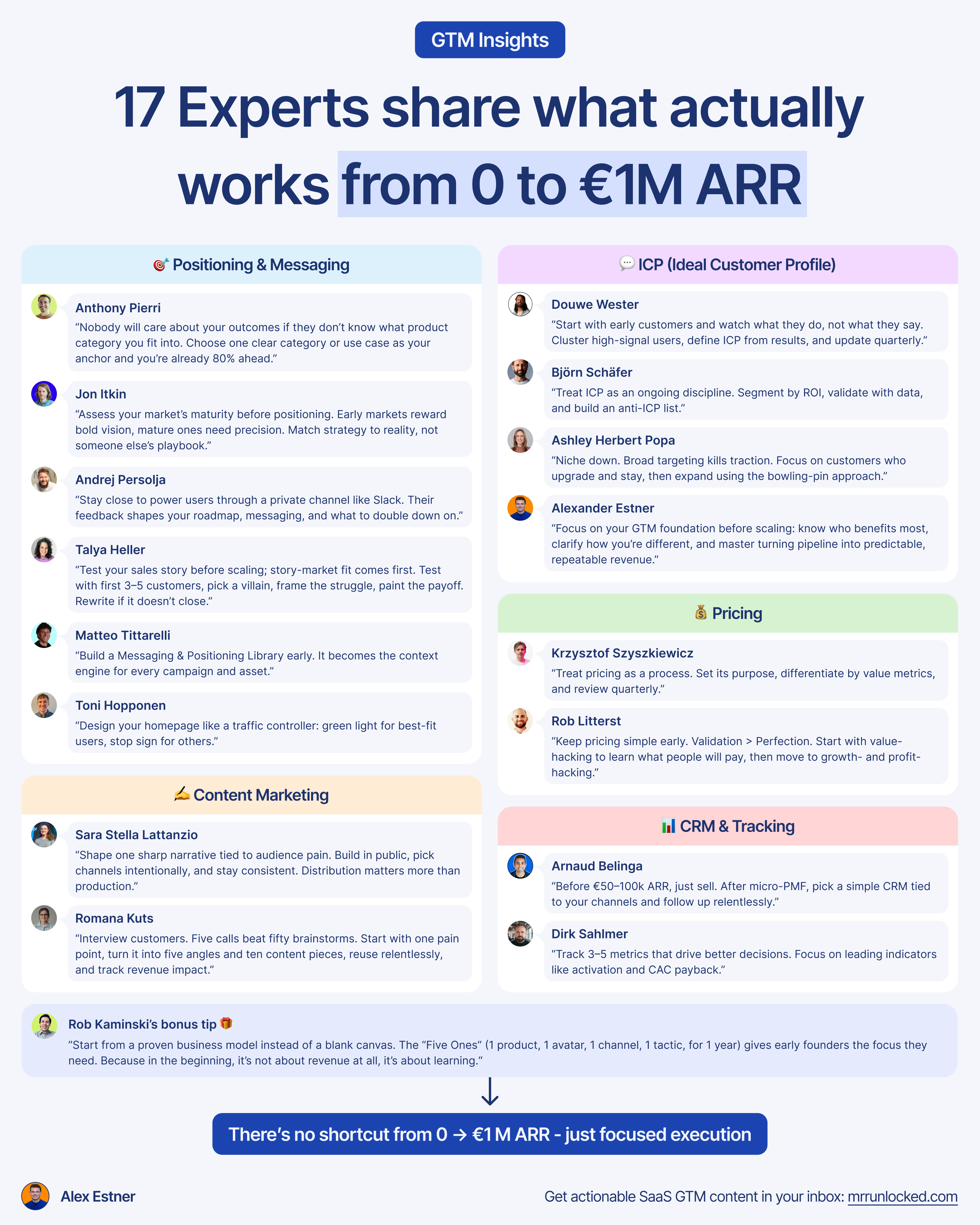 17 experts shared their best tips for your journey to 1€ million ARR.
