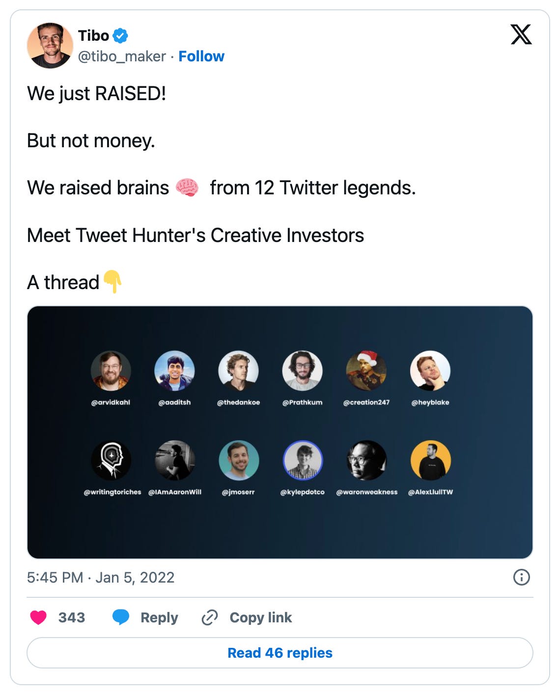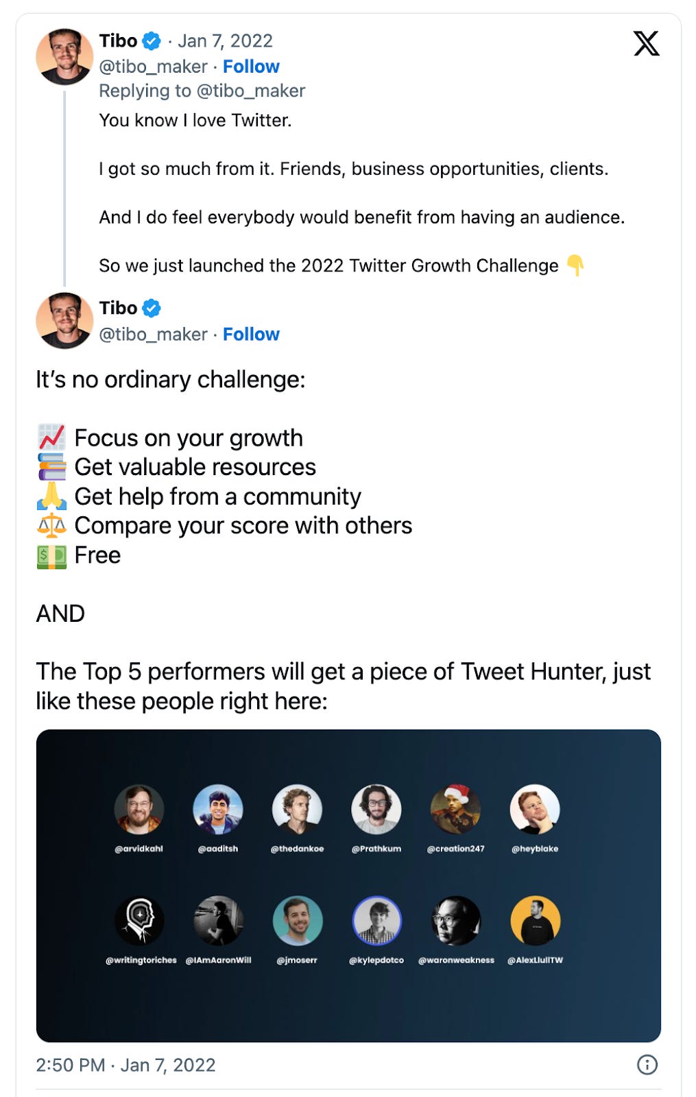 Case in point: Tweet Hunter. They launched on Twitter, then gifted free accounts to micro-creators like JK Molina. It drove credibility and signups faster than any ad spend could have. Source