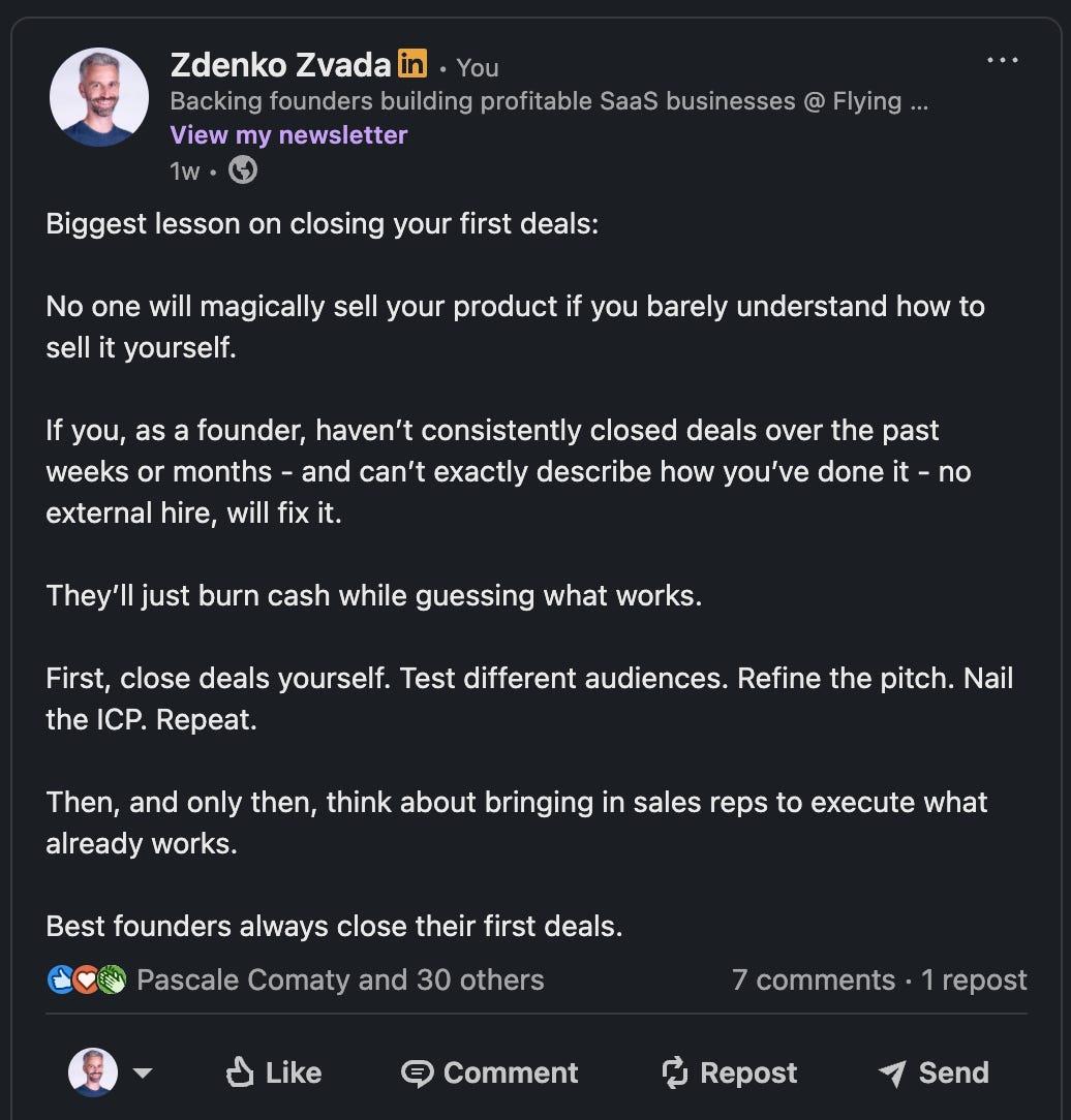 P.S. If you want more of Zdenko's content on bootstrapping and seedtrapping, connect with Zdenko on LinkedIn and subscribe to his Seedstrapped newsletter.