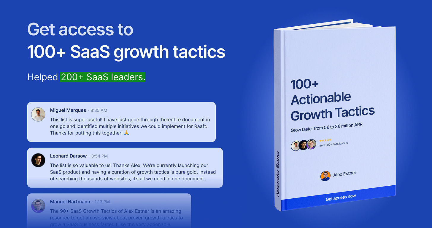 Thatâs why Iâve created a list of 100+ hand-picked, proven growth tactics with detailed explanations and additional resources for early-stage B2B SaaS startups.