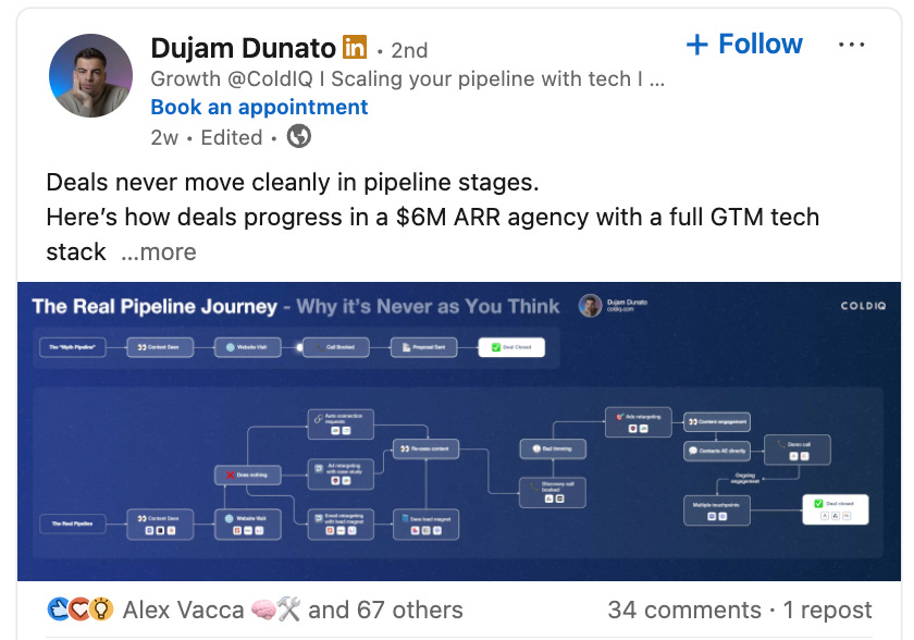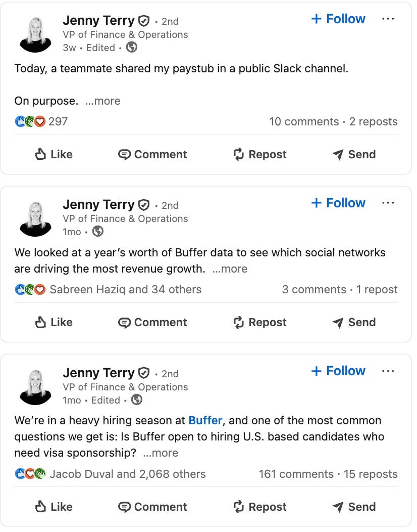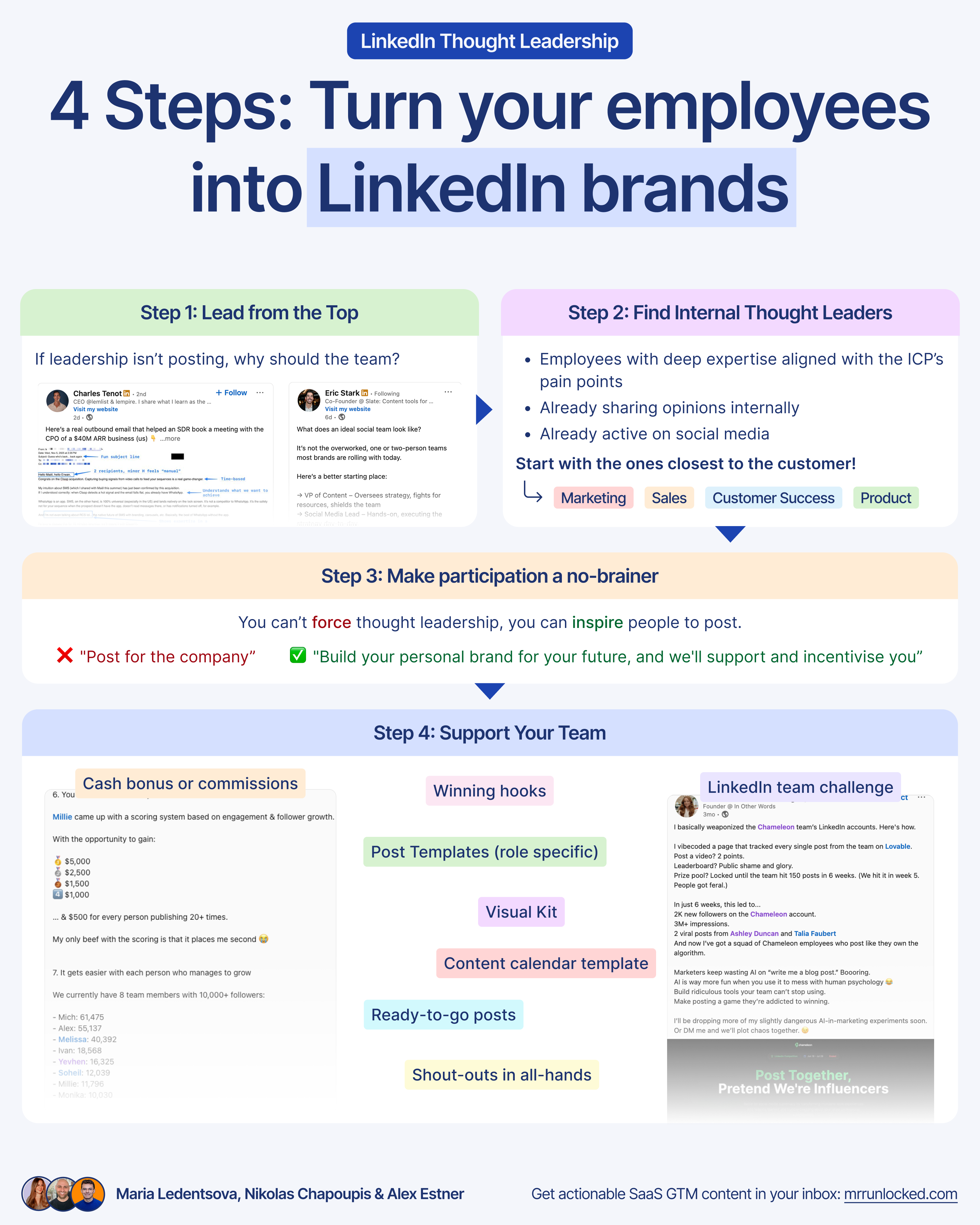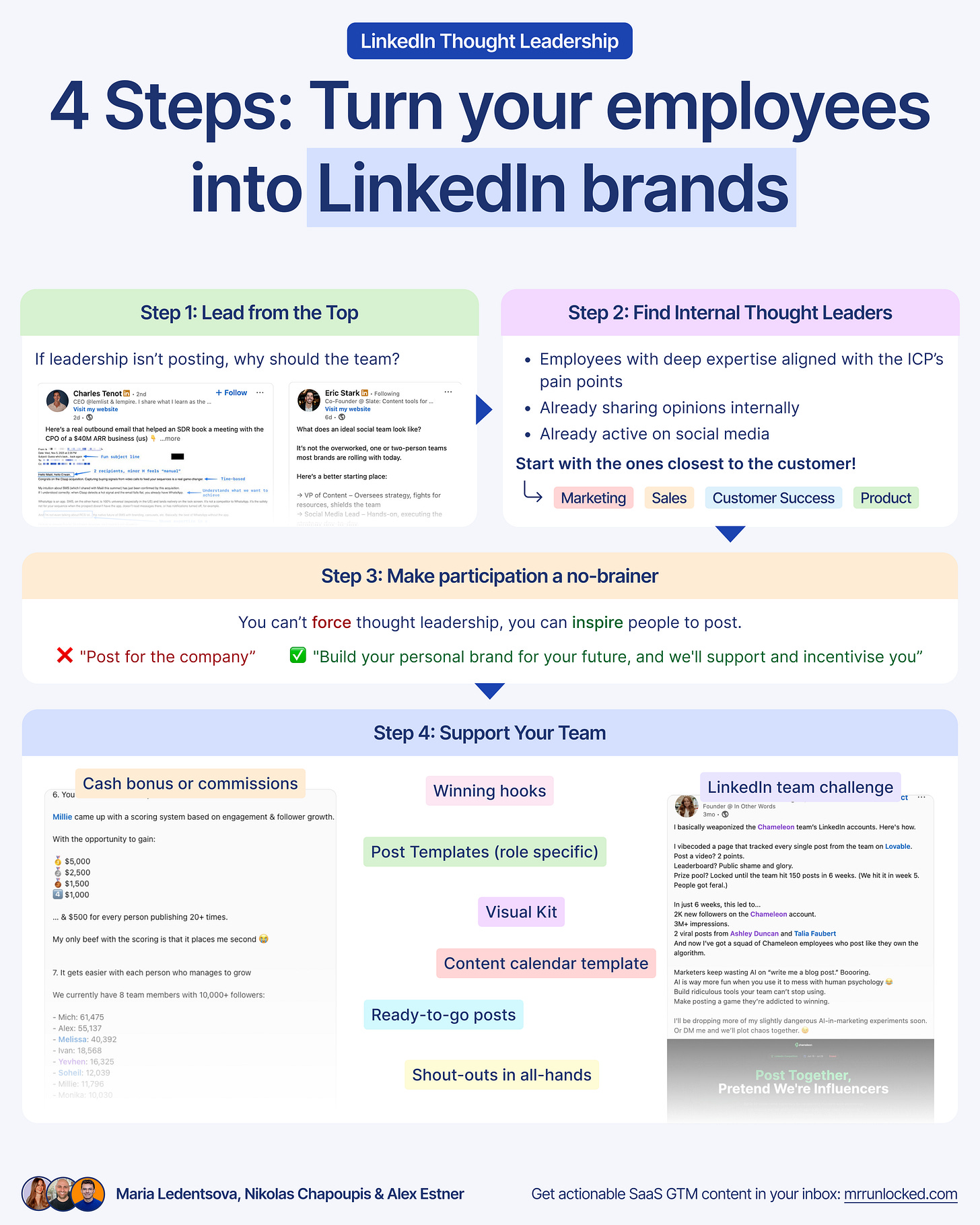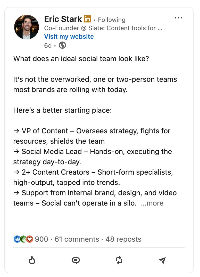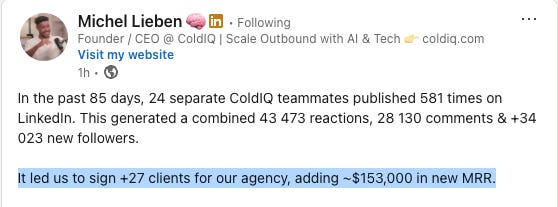 When your team posts too, you multiply distribution, diversify proof, and create a growth engine that doesn’t depend on just one person to drive results.