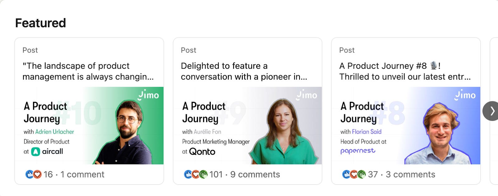 Create branded Canva or Figma templates and share them with the entire team. Your team may decide to have their own visual style on LinkedIn, but you also want to support them if they want to use the company branding, which is even better for awareness and trust building for the company. It’s up to the employees what to choose.
