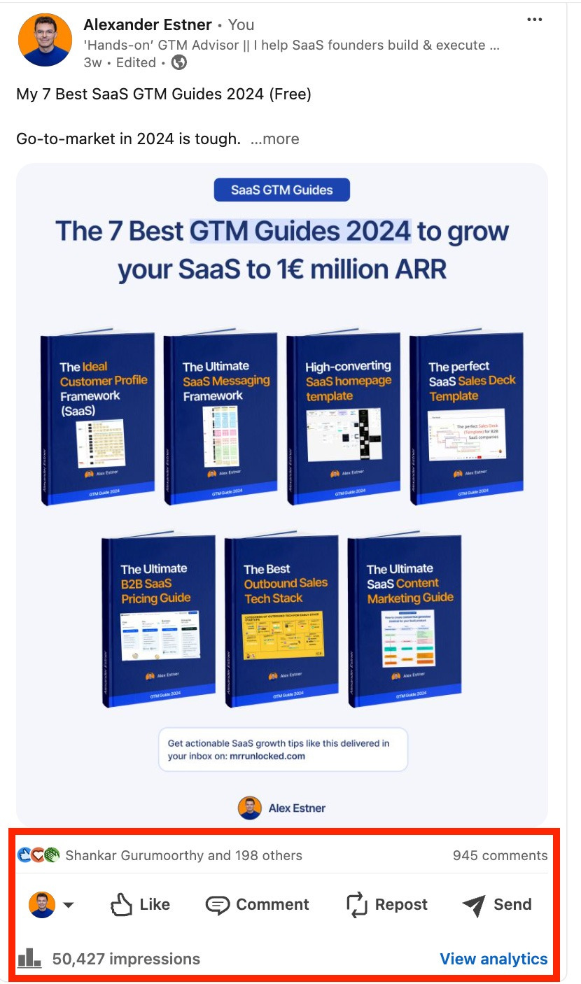You can leave ‘valuable’ comments on other people’s posts and get your profile in front of 100s of potential ICPs.