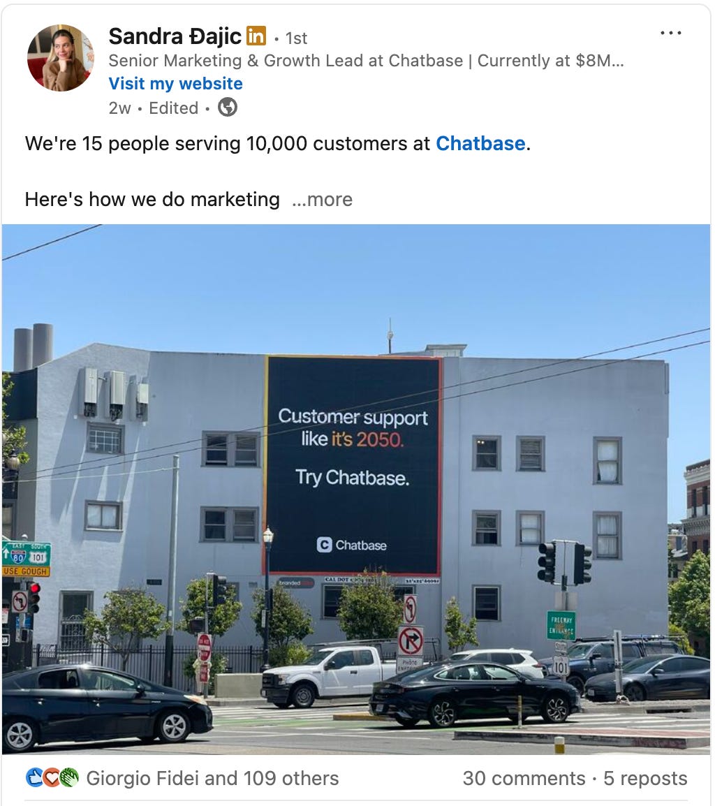 Collection of 10 teams (founder & employees) using LinkedIn to drive pipeline