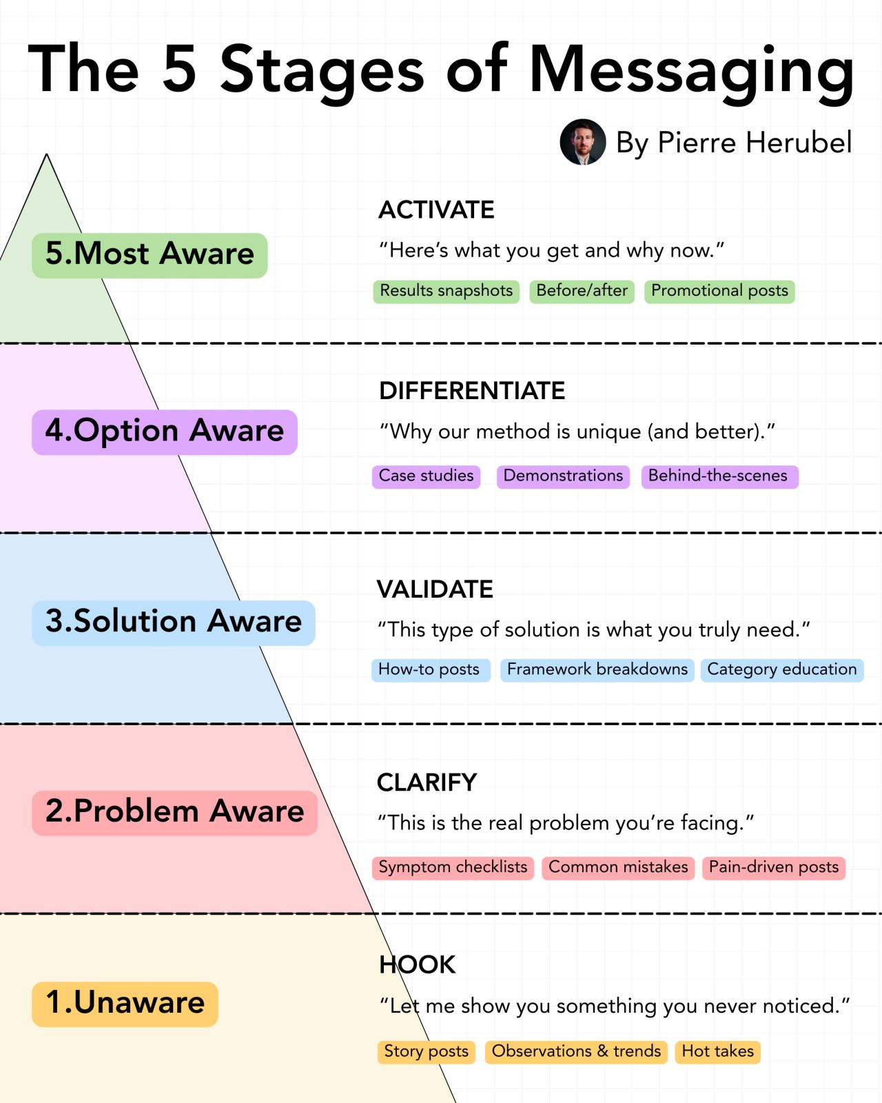 Instead of BOFU, MOFU, TOFU, you can also work with the different awareness stages, from unaware to most aware (aka product aware).
