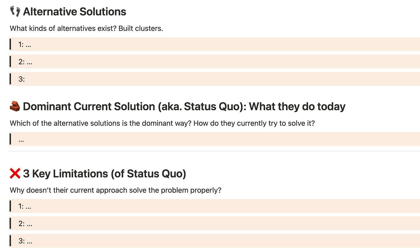 Once you know your alternatives, you need to explain why your product is better for a specific use case / how you’re different.