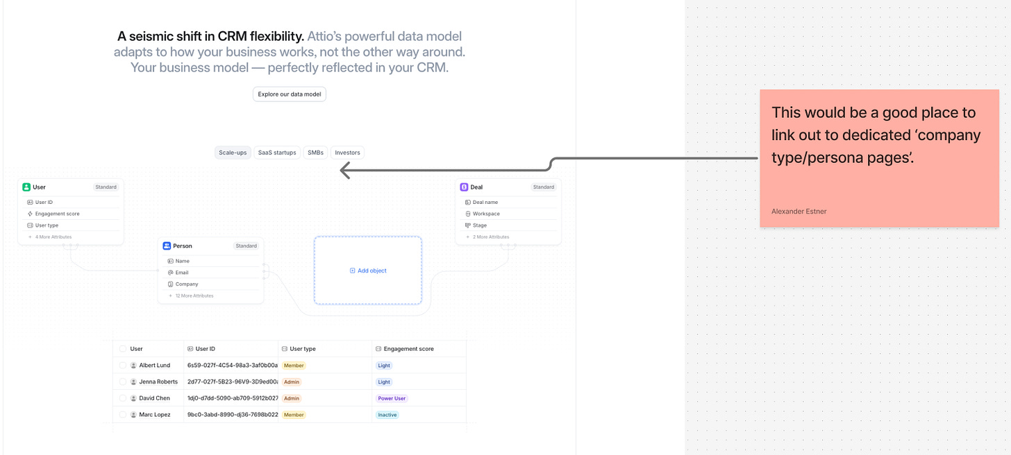 ❌ Links to dedicated ‘company type/persona pages’