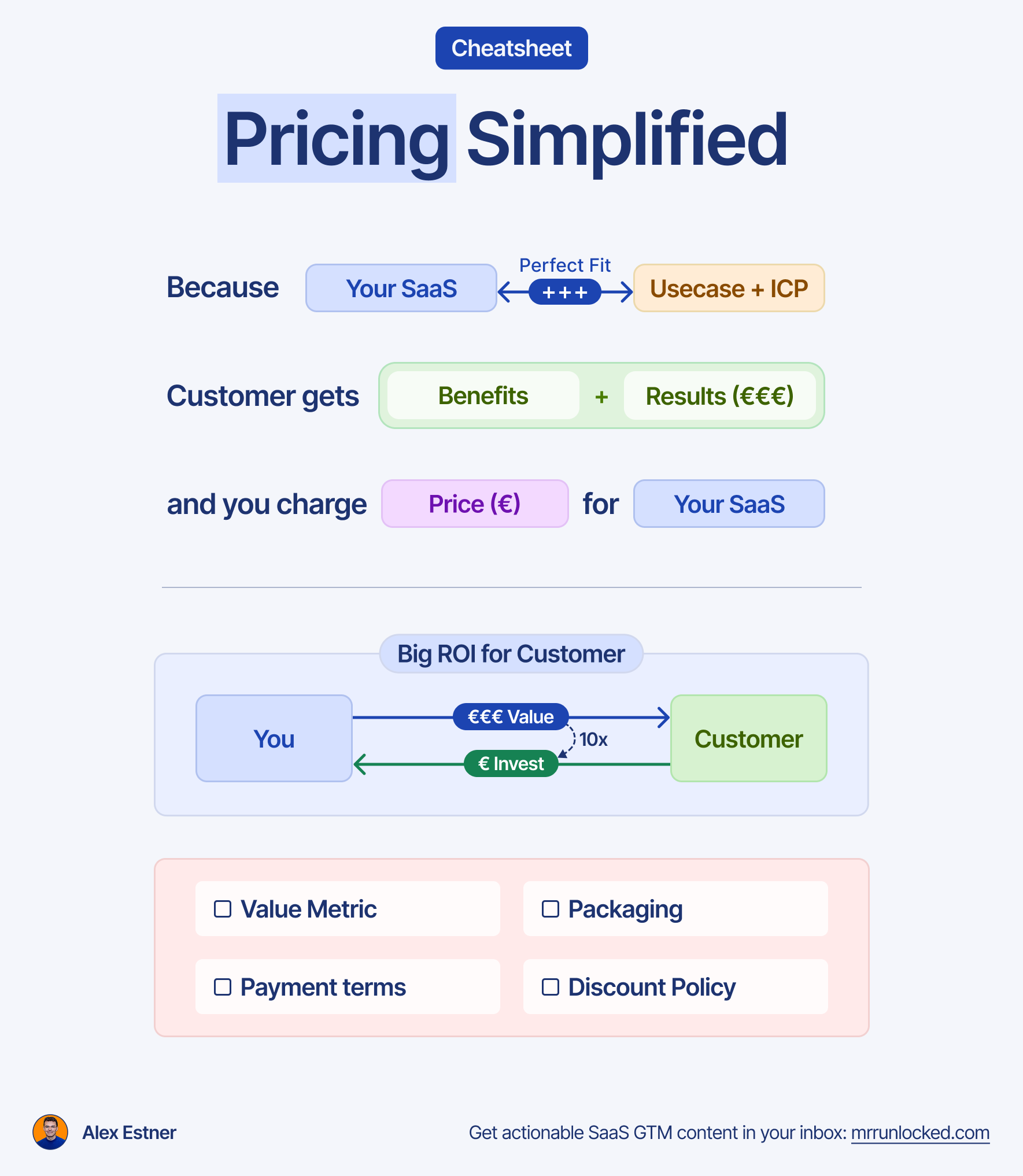 I believe pricing should be good enough to NOT stop you from growing to 1€ million ARR.
