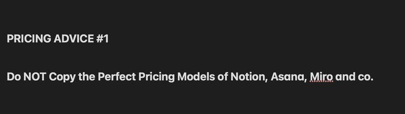 ⛔ So don't copy the 'perfect' pricing models from Notion, Miro, and Asanas of the world.