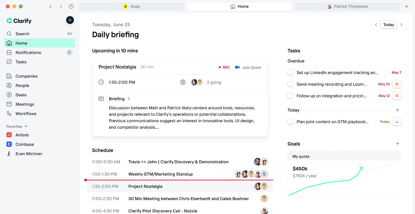 Clarify is the CRM that runs in the background—auto-enriching leads, recording meetings, prepping you for calls, and keeping your pipeline updated. One system, less admin.
