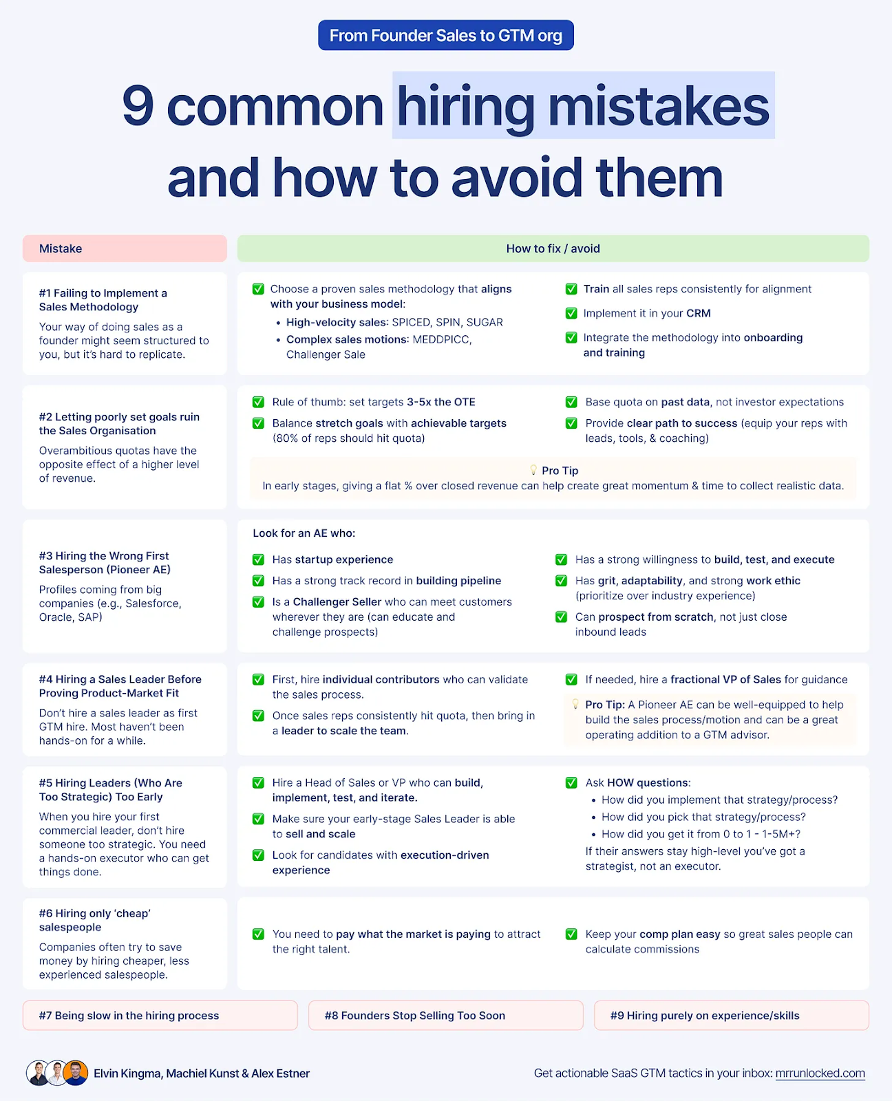 And when it’s about the first GTM hire (after the founder), we recommend hiring a ‘sales pioneer’.