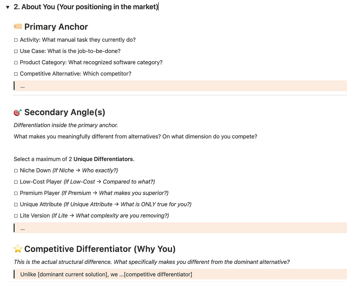 To make it easier for you to craft your positioning, I’ve created a Free Notion Positioning Worksheet for you.